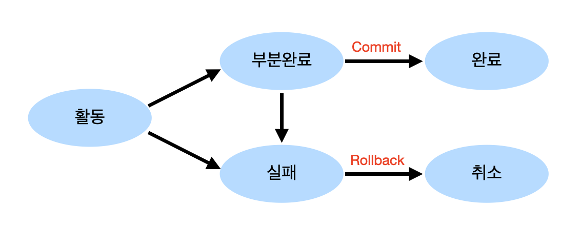- 실패(Failed) : 트랜잭이 실행되다 오류로 중단된 상태. 트랜잭션이 더 이상 정상적으로 진행될 수 없는 상태이다.